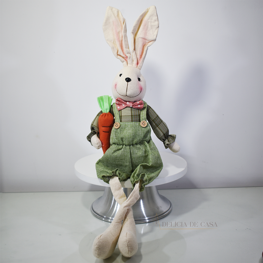 Celebre a Páscoa com o adorável Coelho de Pelúcia Sansão - Delícia de Casa, uma peça que traz charme e aconchego para sua decoração. Com 60 cm de altura, esse coelho veste um look rústico em tecido, com acabamentos delicados que dão um toque especial ao ambiente.