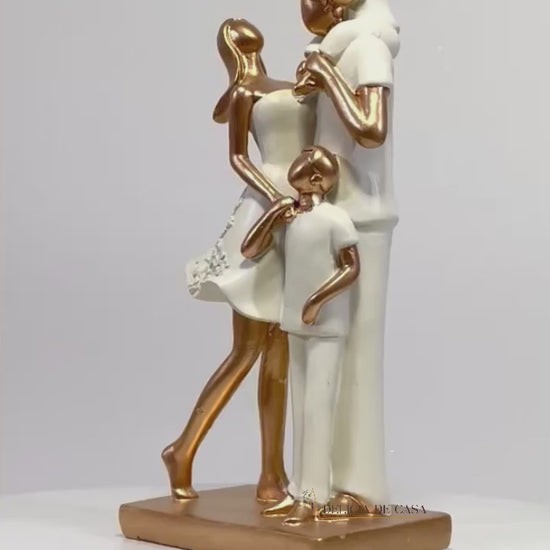 - Design Emocionante: Esta estátua apresenta uma família unida em uma pose afetuosa, transmitindo a importância dos laços familiares e a conexão entre seus membros.