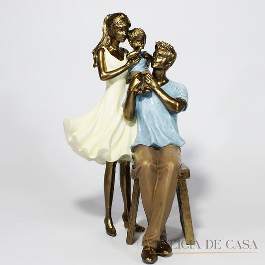 Escultura Decorativa de Família com Filho Menino - Estátua em Resina para Decoração de Ambientes