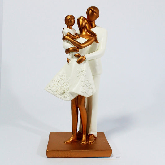 Estátua Decorativa de Família Casal Pais com Filho Bebê - Escultura de Resina para Decoração