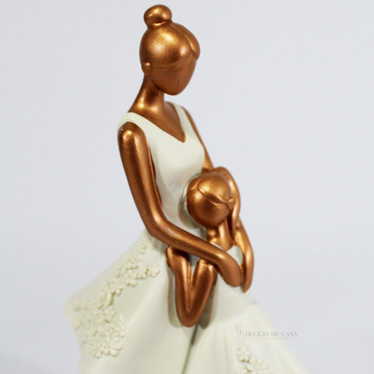 Escultura Decorativa Mãe e Filha em Resina Dourada Decoração Elegante e Presente para Mães