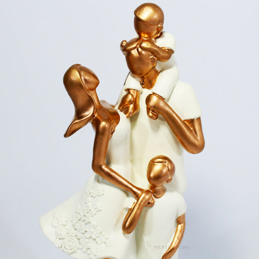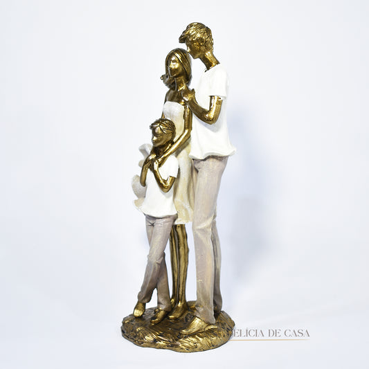 Escultura Decorativa Casal Pais com Filha em Resina Dourada Elegância para Decoração de Casa