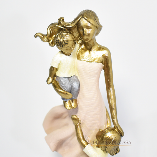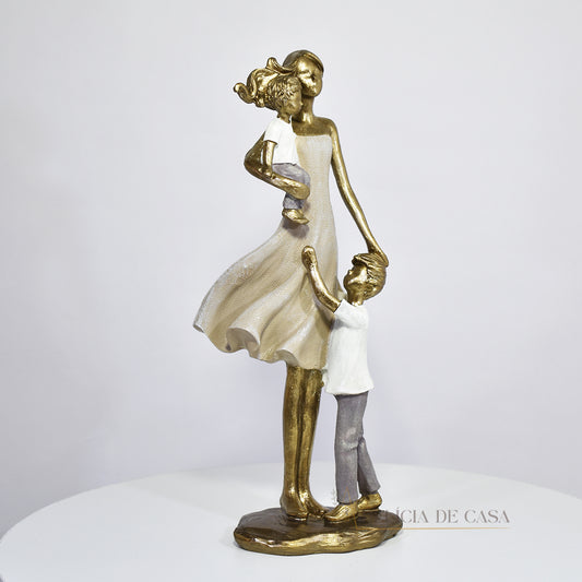 Escultura Decorativa Família em Resina Mãe com dois Filhos - Decoração de Casa, Sala e Quarto