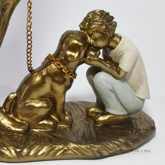 Escultura Família em Resina – Presente Dia das Mães Mãe, Filho e Cachorro Decoração de Luxo